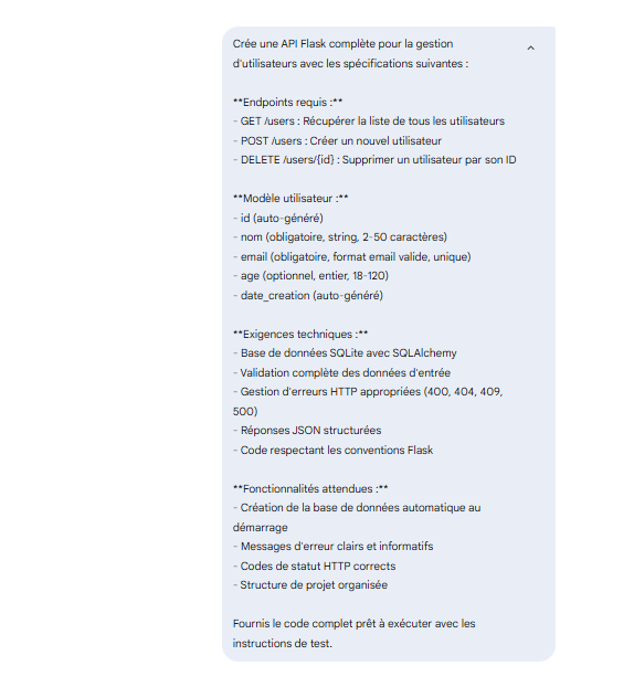 - Structure professionnelle du code (classe User, méthode to_dict())